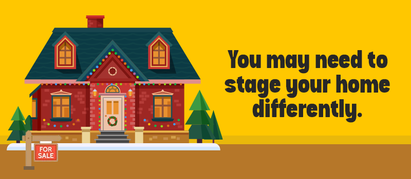 • Make sure the holiday decorations do not overpower the space. If you’re selling around the holiday and have put up decorations, keep it simple. If you’re selling once the holidays are over, carefully consider your displays so your house won’t show wreaths and reindeers in the middle of January.
